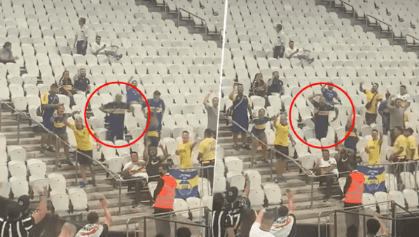 En el desarrollo del encuentro en San Pablo, un simpatizante del Xeneize fue captado en cámara realizando ademanes xenófobos a la parcialidad local y fue detenido por la policía, la cual lo retuvo durante casi toda la noche. Haciendo gestos de imitación a un mono, el protagonista se llevó un repudio unánime.