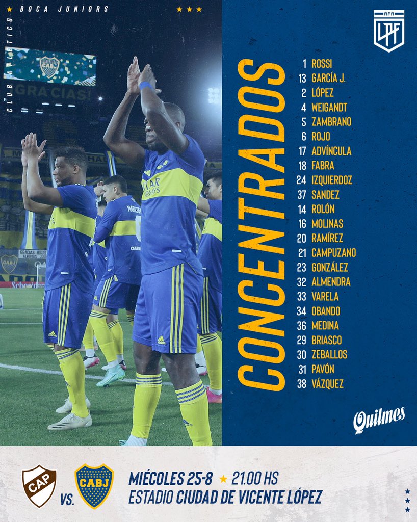 + Lista de convocados de Boca para jugar vs. Platense: