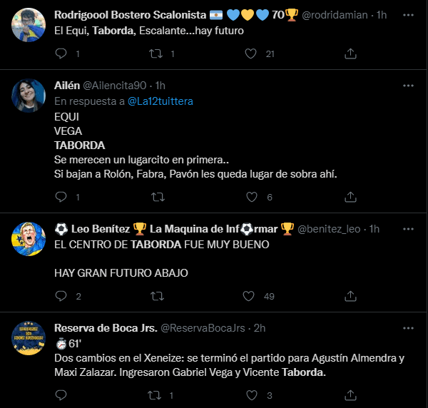 Sin embargo, un jugador que la rompió y que los hinchas de Boca que vieron el partido y comentaron en las redes sociales pidierona gritos para el primer equipo fue a Vicente Taborda.