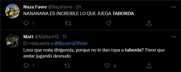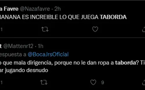 El extremo derecho fue tendencia en Twitter sobre todo por una jugada viral que terminó en el tercer gol de Boca. Taborda ingresó en el segundo tiempo junto a Gabriel Vega cuando el partido estaba 1 a 0 a favor. Con un desborde por izquierda, Taborda envió un centro con su pierna hábil, de tres dedos y preciso al 100% para lo que luego fue el tanto de Vega.