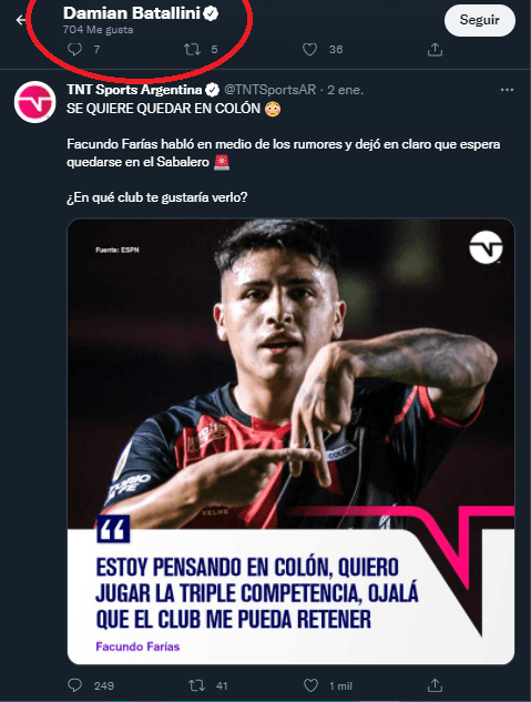 Resulta que, retomando al momento donde lo de Facundo Farías se había caído para llegar a Boca, Batallini le dio like a un posteo informativo en relación a eso. ¿Qué habrá significado ese gesto de hace unos días?