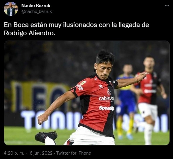 El periodista Ignacio Bezruk reveló que “En Boca están muy ilusionados con la llegada de Rodrigo Aliendro”. La oferta que hizo el consejo de fútbol fue hacia el jugador, porque su contrato con Colón de Santa Fe se termina el 30 de junio y por eso se irá en condición de libre.