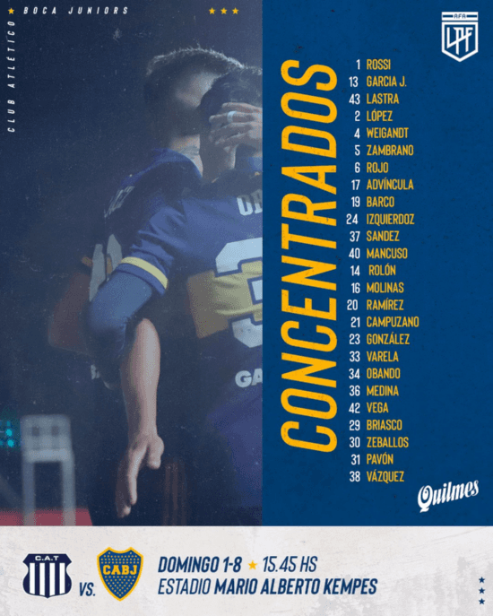 Por otra parte, aparecieron otros 4 futbolistas que fueron titulares en el joven equipo que presentó Boca en las últimas dos fechas: Agustín Lastra, Eros Mancuso, Valentín Barco y Gabriel Vega. Los 4 mostraron un gran rendimiento y el entrenador decidió llevarlos a Córdoba.