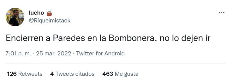 Y esto se pudo observar a través de las redes sociales -a pesar de que se visualiza en cada lugar que se hospedan los futbolistas- con el pedido de los hinchas de Boca para Juan Román Riquelme: que aproveche y convenza a Leandro Paredes de retornar al club que lo vio nacer futbolísticamente.