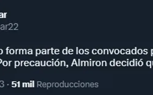 Lógicamente, al enterarse de esto, los hinchas en redes sociales lamentaron una nueva ausencia por temas físicos del Changuito. Será cuestión de días y de prácticas para volver a ver a Zeballos en plenitud, algo que Jorge Almirón espera con ansias ya que se supo que el santiagueño será importante en su ciclo.