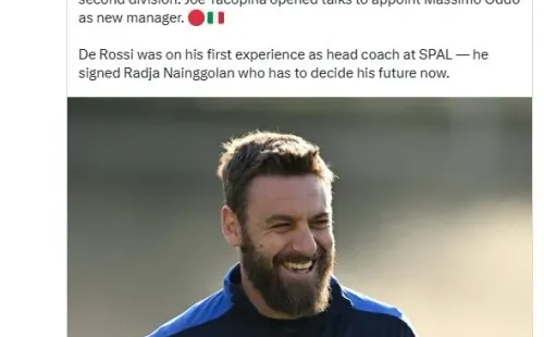 “Daniele De Rossi, cerca de ser despedido como entrenador de la SPAL en la segunda división italiana”, publicó el reconocido periodista Fabrizio Romano en las primeras horas de este lunes para dar a conocer la chance concreta de que el Tano termine inmediatamente con su primera experiencia como DT en clubes.