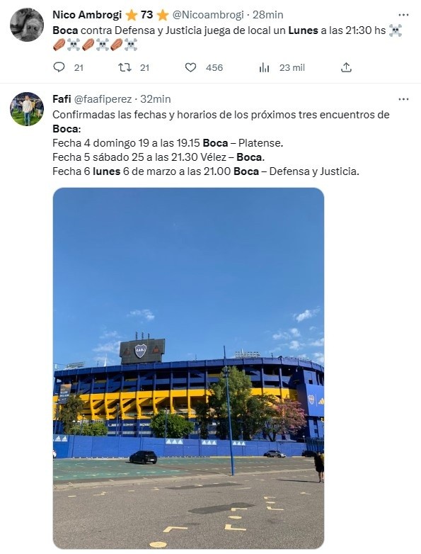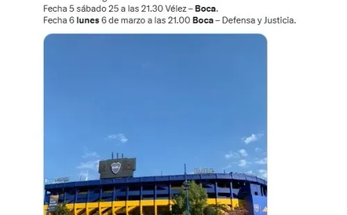 En primera instancia, el equipo de Hugo Ibarra volverá a La Bombonera el domingo 19 de febrero para hacer de anfitrión ante el Platense de Martín Palermo. Aquel choque será el último que Boca juegue un domingo hasta conocer el resto de la programación: en la siguiente fecha será visitante contra Vélez un sábado y luego recibirá a Defensa y Justicia ¡un lunes!