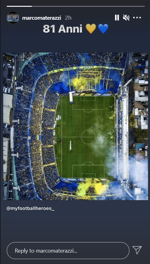 Ambos recibieron muchos mensajes de felicitaciones a la distancia, y en el caso del conjunto de La Ribera hay uno que encantó: el campeón del mundo Marco Materazzi, quien en repetidas ocasiones dejó en claro que amor por la azul y oro, metió una historia de Instagram acordándose del estadio en el que siempre soñó con jugar.
