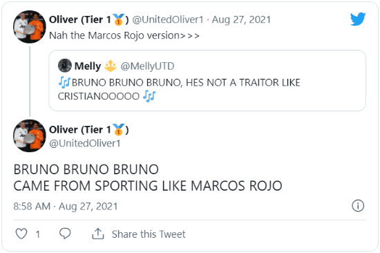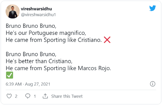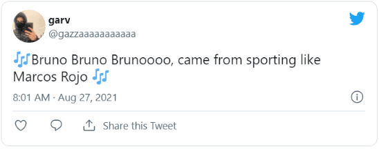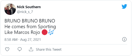 Cuando Bruno Fernandes, actual figura del equipo, la empezó a romper, los hinchas de los Diablos Rojos pusieron de moda el cántico “Bruno, Bruno, Bruno.He comes from Sporting like Cristiano”, yaque los dos portugueses llegaron a Manchester tras un paso previo por el equipo de Lisboa.