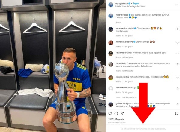 Lamentablemente, la bronca de alginos hinchas del Xeneize se trasladó a las redes sociales y las consecuencias empezaron a salir a la luz. Este martes se advirtió el cierre de los comentarios en la cuenta oficial de Norberto Briasco en Instagram y la decisión tendría como motivo los constantes insultos que recibe a diario. El suceso se hizo viral en Twitter y cierta parcialidad de Boca se solidarizó con el jugador.
