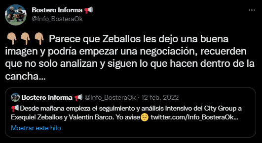 No han trascendido de momento montos posibles de la oferta que prepara el City por el Changuito, pero su valor de mercado es de 7 millones de euros y con la reciente extensión de su contrato tiene una cláusula de 20 millones de la misma moneda, por lo que Boca pretenderá cifras cercanas a ese número para aceptar una oferta por Zeballos. ¿Lo comprará el grupo empresario al santiagueño?