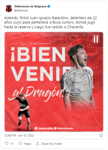 Hablamos deJuan Ignacio Baiardino, quien jugará este año con la camiseta de Defensores de Belgrano. El delantero de 22 años había jugado la última temporada con Chacarita y ahora hará lo propio defendiendo los colores del Dragón.
