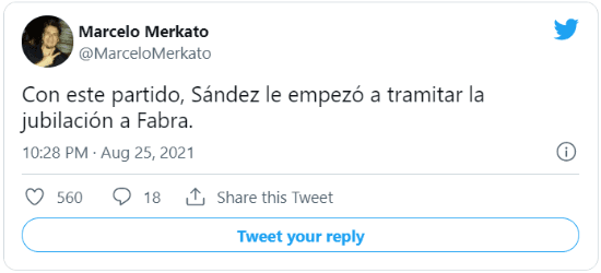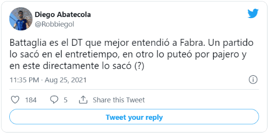 “Sabemos lo que nos puede dar él, sabemos lo que nos puede dar Sandez al igual que todos los que estan en el plantel. Hoy pensamos en Sandez porque nos pueda dar algo en cuanto a nuestra idea. Fabra es un gran jugador, con sus errores, como todos”, había expresado Battaglia en la previa del encuentro.