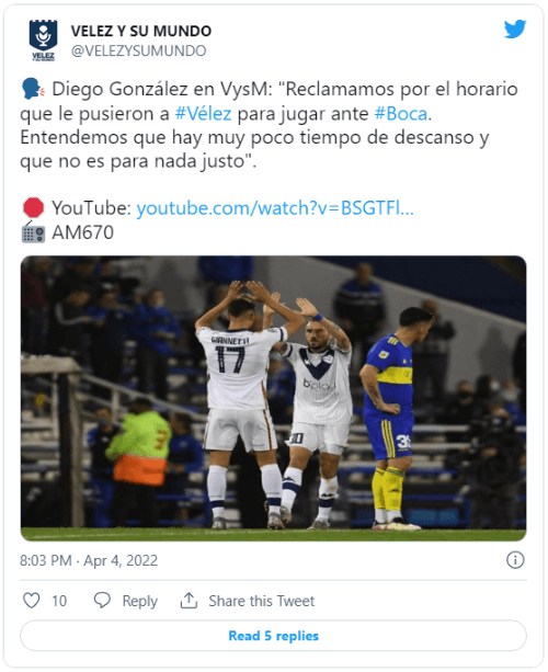 Lo cierto es que, como luego el Xeneize debe jugar el martes ante Always Ready, si o si uno de los dos equipos iba a tener pocos días de descanso. En las últimas horas, Diego González, vicepresidente de Vélez, rompió el silencio y aseguró que ya hay un pedido para cambiar la fecha.