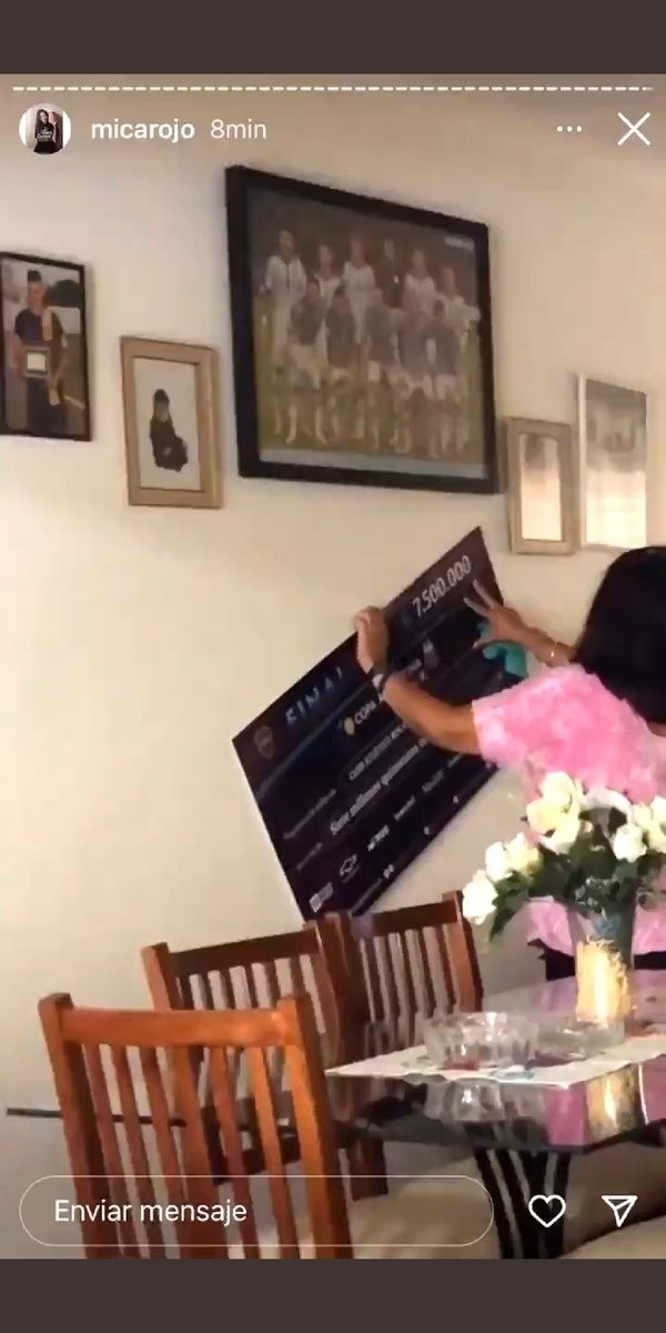 El central estuvo durante toda la jornada del jueves pasendo por el barrio de Quilmes con la copa bajo el brazo, además de tenerla en su casa a la hora de los mates. Esta tarde también se dio a conocer una foto en la cual se lo vio a Rojo junto a su familia sujetando el trofeo luego de un partido de fútbol en una cancha de 5. Y además, como frutilla del postre, la madre de Marcos fue filmada por su hermana sosteniendo con orgullo el gran cheque que ganó Boca al ser campeón, luciéndolo contra la pared como si intentara colgarlo de la misma. ¡Familia babosa la de Rojo!