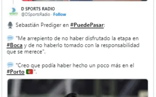 “Me arrepiento de no haber disfrutado la etapa en Boca y de no haberlo tomado con la responsabilidad que se merece”, expresó el volante en diálogo con D Sports Radio, que hace unos meses había dicho que“ir aBocafue un error, no en lo personal, pero no era el momento”.