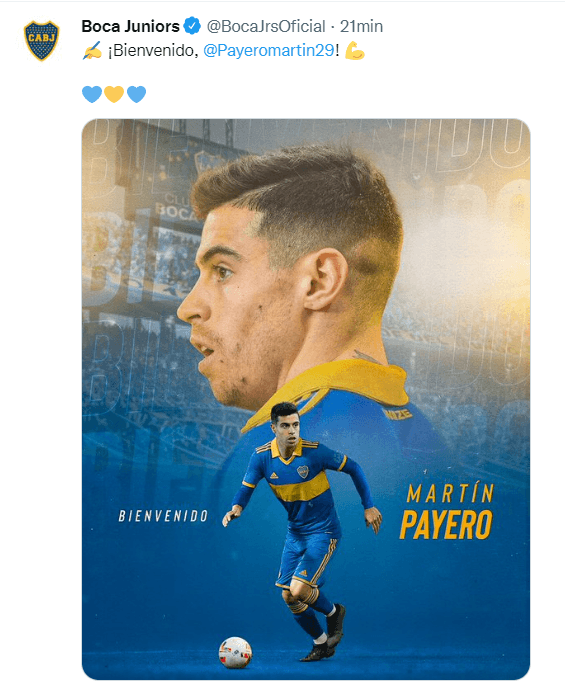 “¡Bienvenido, @Payeromartin29”, escribió brevemente la cuenta oficial del Xeneize en Twitter junto a una gráfica donde ya se lo ve posando con la camiseta azul y oro. En una semana complicada en La Ribera, los hinchas se mostraron entusiasmados con la llegada del volante y esperan verlo pronto en cancha, según lo decida el tridente técnico que encabeza Hugo Ibarra.