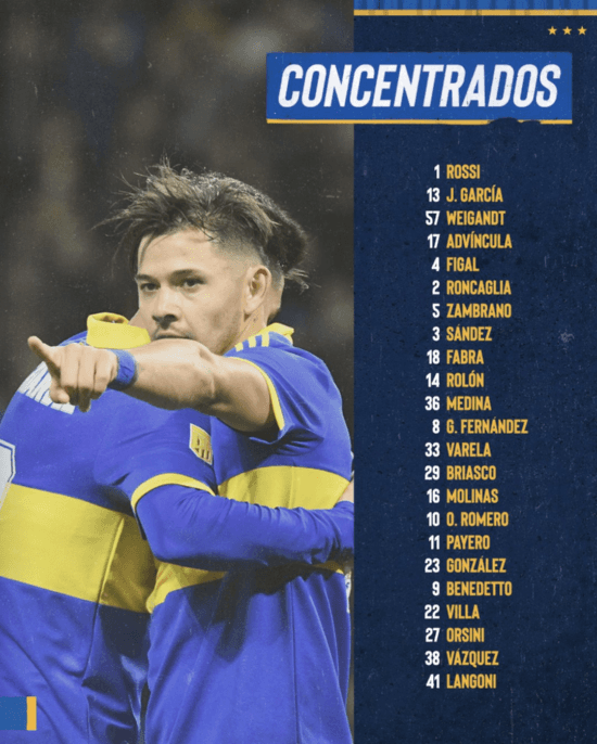 De esta manera, según lo que paró Ibarra en la práctica, Boca saldría con Agustín Rossi; Luis Advíncula, Carlos Zambrano, Nicolás Figal, Frank Fabra; Martín Payero, Alan Varela, Pol Fernández; Óscar Romero, Darío Benedetto y Sebastián Villa.