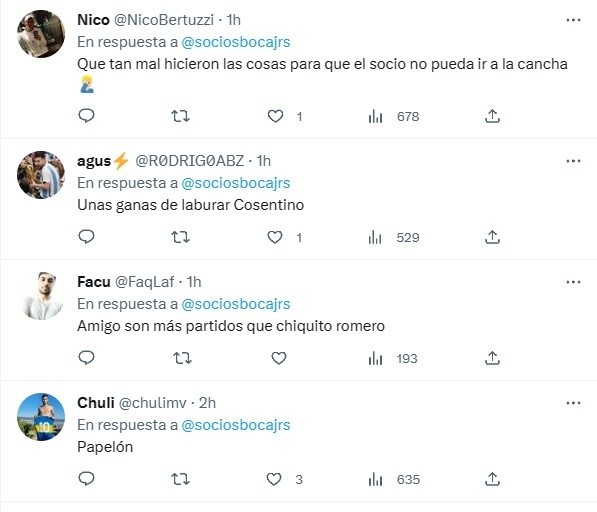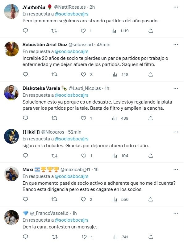 El posteo no fue bien recibido y se leyeron comentarios desde “papelón” hasta “gracias por dejarme afuera todo el año”. Una situación complicada que atraviesa la institución azul y oro para poder contentar tanto a los socios plenos como a los adherentes en vísperas al partido contra Platense.
