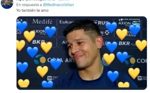 “Te Amooo mi Amor”, escribió Cristian Medina, volante de 19 años que ya jugó 32 partidos oficiales con la camiseta azul y oro (22 como titular). Pero no mencionó a ninguna otra cuenta, por lo que nadie sabe para quién fue la declaración de amor.