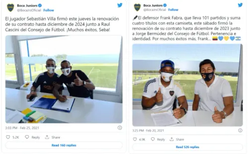 Tenemos que irnos al 25 de febrero de 2021, cuando el club de la Ribera oficializó la extensión del contrato de Sebastián Villa hasta diciembre del 2024. 5 días antes le había tocado a Frank Fabra, cuyo vínculo se estiró hasta2023.