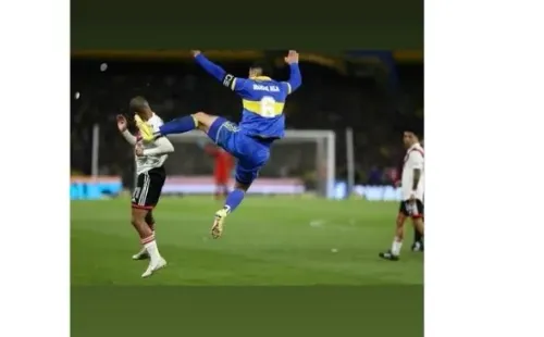 Las dos victorias de Boca ante River en el 2022, tanto en el Monumental como en La Bombonera, fueron motivos de cargadas en La Ribera y Rojo no se quiso quedar afuera, por lo que posteó imágenes del reciente triunfo en el Alberto J. Armando y una foto no pasó desapercibida. El zaguero no se olvidó del patadón que le pegó a Nicolás De La Cruz (luego fue expulsado) y también la sumó a la recopilación. Los hinchas de Boca chochos.