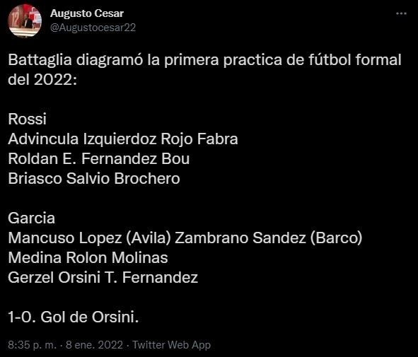 Como todavía hay tiempo para el arranque del Torneo de Verano, Battaglia tendrá al menos una semana más para seguir probando opciones. Lo fundamental para el DT será el regreso de muchos de los jugadores importantes que ahora están aislados por COVID.