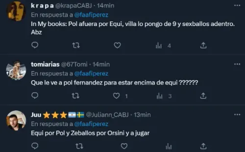 Por medio de las redes sociales, los fanáticos del Xeneize cuestionaron al DT porque utilizó a Guillermo Fernández y no optó por Equi Fernández, quien tuvo un gran rendimiento en el último partido que afrontó el plantel en Abu Dhabi.