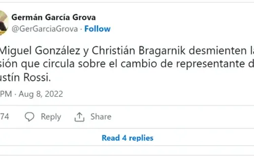 Desde el entorno del jugador desmintieron la versión de ese cambio de agente. Además, el propio Christian Bragarnik, quien sonaba fuerte como futuro representante del arquero, hizo lo propio en las últimas horas. Pese a lo trascendido, no habrá modificaciones.