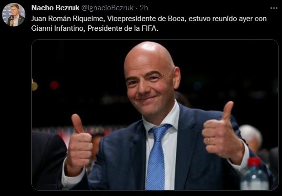La presencia de Gianni Infantino en Argentina generó movimientos en todo el fútbol local. Los principales dirigentes deportivos del país tuvieron la oportunidad de reunirse con el presidente de la FIFA y Juan Román Riquelme no fue la excepción.