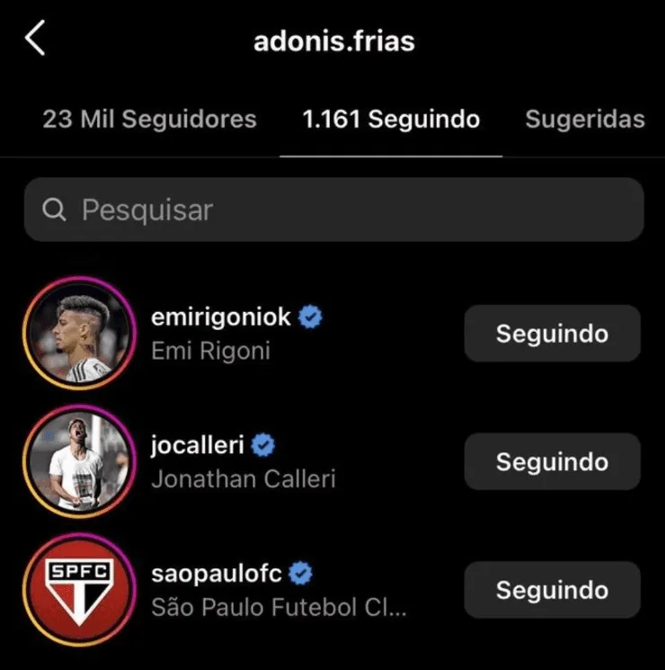 De hecho, el propio Frías ya sigue al club en su Instagram, así como también a Jonathan Calleri, actual figura de Sao Pauloy a Emiliano Rigoni, quien se marchó hace solo días del conjunto brasileño. ¿Será esta una señal de su posible nuevo destino?