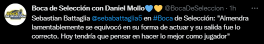 En el programa “Boca de Selección”, el ex DT Xeneize expresó: “Almendra lamentablemente se equivocó en su forma de actuar y su salida fue lo correcto. Hoy tendría que pensar en hacer lo mejor como jugador“. En el Xeneize, Almendra no disputará minutos ni siquiera en Reserva hasta su salida, por lo que recién en julio del 2023 tendrá actividad dentro de una cancha, ya con los colores del club español. ¿Coincidís con Battaglia?