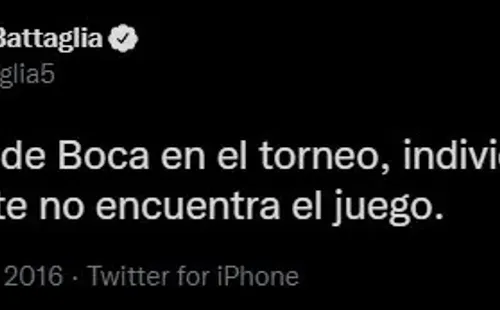 En las redes sociales fueron críticos con el juego del equipo y con el rol de Battaglia como DT. Y hastsa hicieron viral un tuit viejo del “León”: el 29 de agosto de 2016, Seba había publicado unas palabras tras la derrota del Xeneize frente a Lanús, con Guillermo Barros Schelotto como entrenador. “Mal arranque de Boca en el torneo, individualmente y colectivamente no encuentra el juego”, fue el mensaje en ese entonces. Sus palabras aplican justo para este momento.