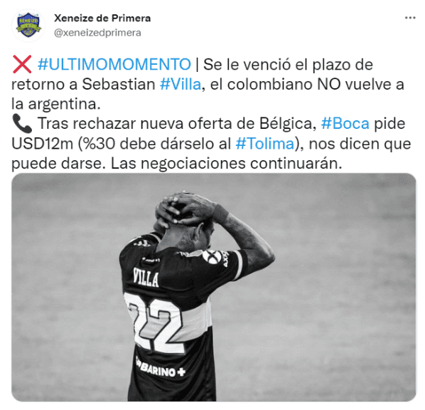 Durante estos días se conocerán más detalles de las decisiones que se tomarán en Brandsen 805 con respecto al conflicto con Sebastián Villa, mientras el club aguarda una notable mejora en la oferta del Brujas para llevarse al colombiano.