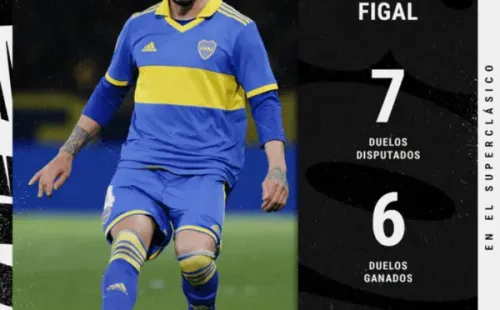 El jugador en cuestión es Jorge Nicolás Figal. El ex Independiente fue una verdadera muralla y completó un gran encuentro en La Bombonera. Ganó 6 de los 7 duelos individuales que disputó, inclusive un cierre clave en el primer tiempo en un avance de Matías Suárez. Además, no cometió ni una infracción. Lo celebra Boca.