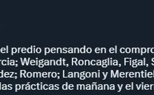 De esta manera, el entrenador xeneize plantea una formación inicial para el sábado frente a Olimpo de la siguiente manera: Javier García; Marcelo Weigandt, Facundo Roncaglia, Nicolás Figal, Agustín Sandez; Cristian Medina, Equi Fernández, Alan Varela, Óscar Romero; Luca Langoni y Miguel Merentiel. Cabe destacar que este equipo es muy similar al que los hinchas piden en redes desde que el propuesto por Ibarra no da resultados. ¿Será así finalmente el XI en Chaco?