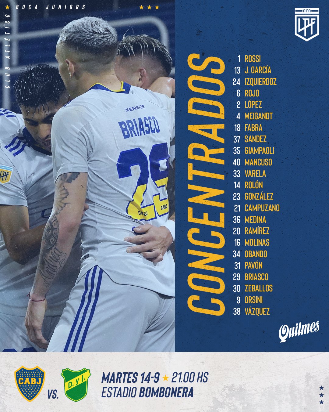 Luego de un fin de semana sin fútbol por las elecciones legislativas a nivel nacional, sobre el cierre del domingo Boca Juniors anunció a sus convocados para el duelo del martes a las 21 ante Defensa y Justicia en La Bombonera por la fecha 11 de la Liga Profesional.