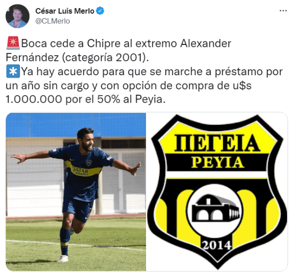 Fernández vivirá su primera experiencia en Europa, luego de que Boca concretara un préstamo alPeyia de Chipre con una opción de compra que ronda el millón de euros por el 50% de la ficha del extremo. Además, el juvenil dejará un hueco en la lista de buena fe del Xeneize para la Copa Libertadores, ya que había sido inscripto por el club para la edición 2022 ante la lista de suspendidos que arrastraban los de Battaglia de la edición anterior. A probar suerte al Viejo Continente, con la ilusión de poder regresar y debutar en Primera. ¡Éxitos!