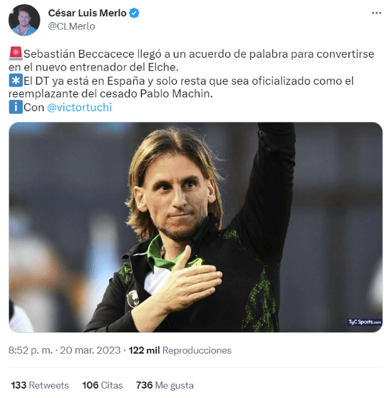 Según informó el periodista César Luis Merlo, ex-DT de Defensa y Justicia “llegó a un acuerdo de palabra para convertirse en el nuevo entrenador del Elche”. El equipo que está casi descendido de LaLiga contará con los servicios del argentino, que estaba libre desde su salida del Halcón.
