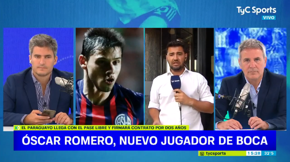 Con el correr de los minutos y la difusión de la información, “Tato” Aguilera finalmente reveló el nombre del jugador internacional que se convertirá en la quinta incorporación del club de La Ribera en el libro de pases. “Óscar Romero es nuevo jugador de Boca”, anunció el periodista de TyC Sports luego de realizar algunas averiguaciones. El paraguayo parecía que había arreglado con el Botafogo de Brasil para continuar con su carrera, pero el equipo que lidera Juan Román Riquelme metió la cola y pescó al exfutbolista de Racing y San Lorenzo.