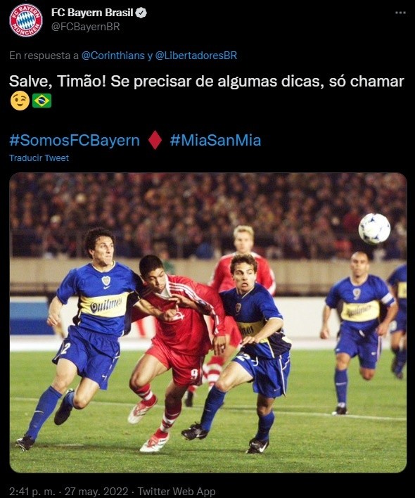 Hubo una sorpresa en las redes sociales por la publicación que hizo la cuenta oficial del Bayern Munich en Brasil. Ante la publicación que hizo el perfil de Corinthians sobre el duelo frente a Boca en octavos, desde el club alemán respondieron: “Vamos, Timao. Si necesitan algunos consejos, llamen”.