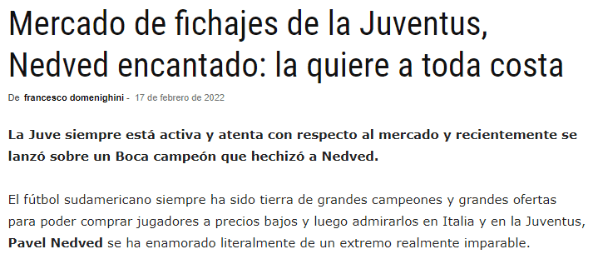 El mercado verdaderamente atractivo tendrá lugar a mediados del 2022, donde los clubes europeos invierten la mayor cantidad de su presupuesto antes del comienzo de la temporada. Es por eso que varios equipos de scouting ya pusieron el ojo en el fútbol argentino y desde Italia reportaron un fuerte interés por parte de la Juventus para hacerse de los servicios de Sebastián Villa a partir del libro de pases de verano en el Viejo Continente.