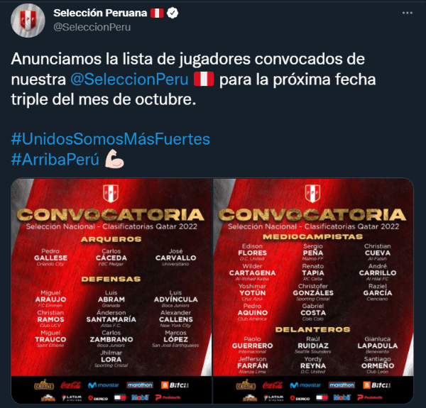 Este viernes, Ricardo Gareca, director técnico argentino del combinado Bicolor, le puso punto final al misterio y confirmó la lista de convocados para los cotejos frente a Chile, Bolivia y Argentina, los cuales se desarrollarán el 7, 10 y 14 de octubre respectivamente. Y los mencionados jugadores de Boca están incluidos en esa nómina oficial.
