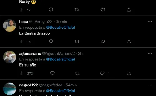 Ahora, con una puesta a punto muy pronunciada de parte de todo el plantel, mediante un foto que la cuenta oficial del club posteó de Briasco haciendo pasadas en la práctica, los hinchas le depositaron toda la confianza a que el delantero tendrá un buen año. Desde frases como “tiene un plan” a incluso ilusionarse con el panorama internacional diciendo que a Boca, Briasco “le dará la tan ansiada”, no quedan dudas que los fanáticos de la Ribera le ponen fichas a Norby. ¿Será este el año del armenio en el Xeneize?
