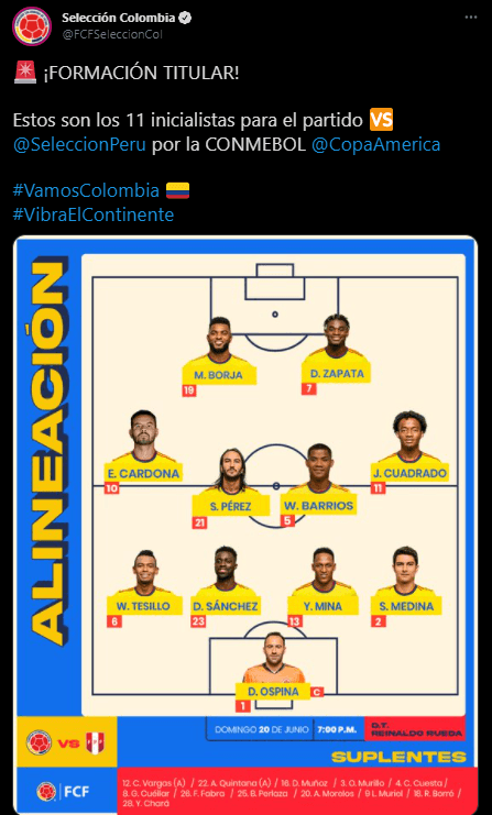 Sebastián Pérez figuró como titular ante Perú por la Copa América en la Selección de Colombia por la ausencia de Matheus Uribe e integró la mitad de cancha junto al ex Boca Wilmar Barrrios y con Edwin Cardona. También en la delegación colombiana se encuentra Frank Fabra, citado a último momento.