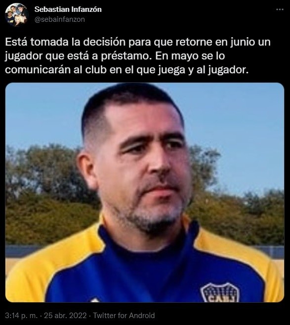 El periodista partidario Sebastián Infanzón reveló una información que causó un gran revuelo entre los hinchas. “Está tomada la decisión para que retorne en junio un jugador que está a préstamo. En mayo se lo comunicarán al club en el que juega y al jugador”, manifestó. ¿De quién se trata?