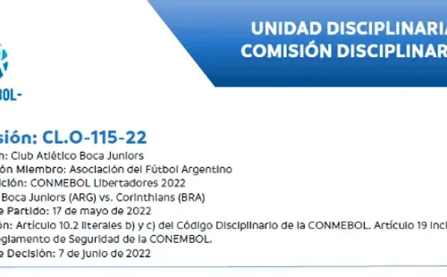 La Conmebol aclaró que “el monto de esta multa será debitado automáticamente del monto a recibir por el Club de la CONMEBOL en concepto de derechos de Televisión o Patrocinio”. Y luego le realizó una advertencia al club de la Ribera: repetir una sanción similar podría ser más grave.