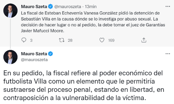 Además, el periodista especializado en policiales, Mauro Szeta, explicó que“en su pedido, la fiscal refiere al poder económico del futbolista Villa como un elemento que le permitiría sustraerse del proceso penal, estando en libertad, en contraposición a la vulnerabilidad de la víctima”. ¿Qué es lo que quiere evitar la fiscal? Que el delantero abandone el país por el simple hecho de tener un buen poder adquisitivo.