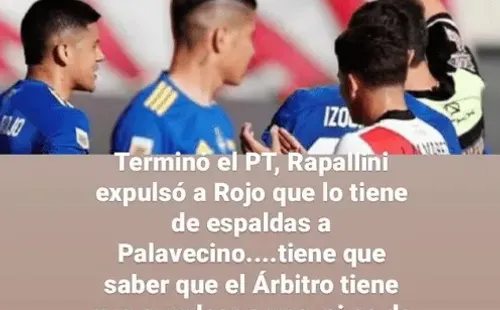 En este contexto, el exjugador de Boca que se manifestó en sus redes sociales fue Cristian Traverso. El “Tigre” explotó en su cuenta de Instagram y publicó una picante historia dedicada al árbitro del Superclásico. “Termino el PT, Rapallini expulsó a Rojo que lo tiene de espaldas a Palavecino… tiene que saber que el árbitro tiene que expulsar a uno, si es de Boca mejor, y lo echó!!!”, expresó el exfutbolista repasando la jugada de la segunda amarilla.