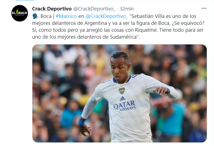 Por otra parte, Márcico defendió a uno de los resistidos: “Sebastián Villa es uno de los mejores delanteros de Argentina y va a ser la figura de Boca, ¿Se equivocó? Si, como todos pero ya arregló las cosas con Riquelme. Tiene todo para ser uno de los mejores delanteros de Sudamérica”. Y cerró con una declaración en coincidencia con los hinchas:“Darío Benedetto es el mejor refuerzo de Argentina”.